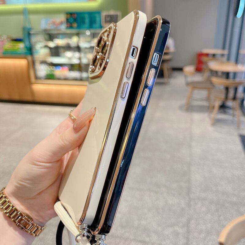 アイホン11 Pro Max iPhone7 8 ケース スマホカバー ネックストラップ メッキ加工 ショルダーストラップ